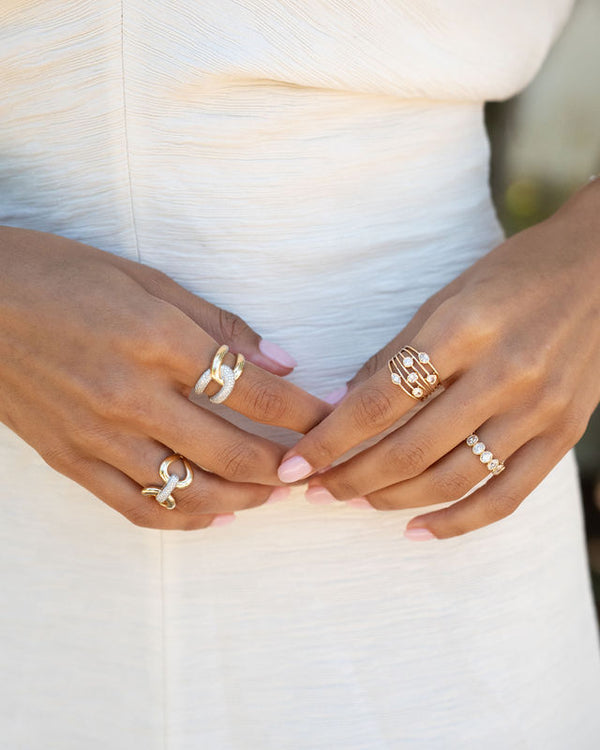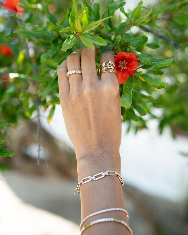 Diamond Charm Multi Wire Band with Bezel Set Diamonds