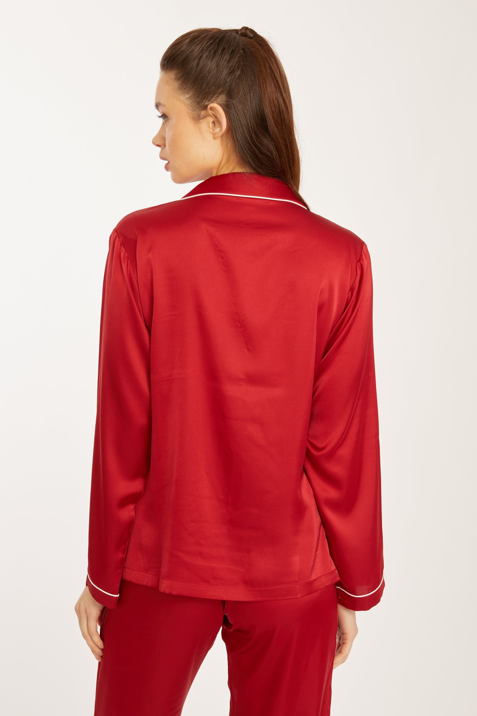 Experience the ultimate in refined comfort with the Long PJ Set. Made from silky-soft polysilk fabric, this set includes a long-sleeve button-up shirt and relaxed full-length pants. Lightweight yet elegant, it’s perfect for cozy nights at home or stylish lounging.