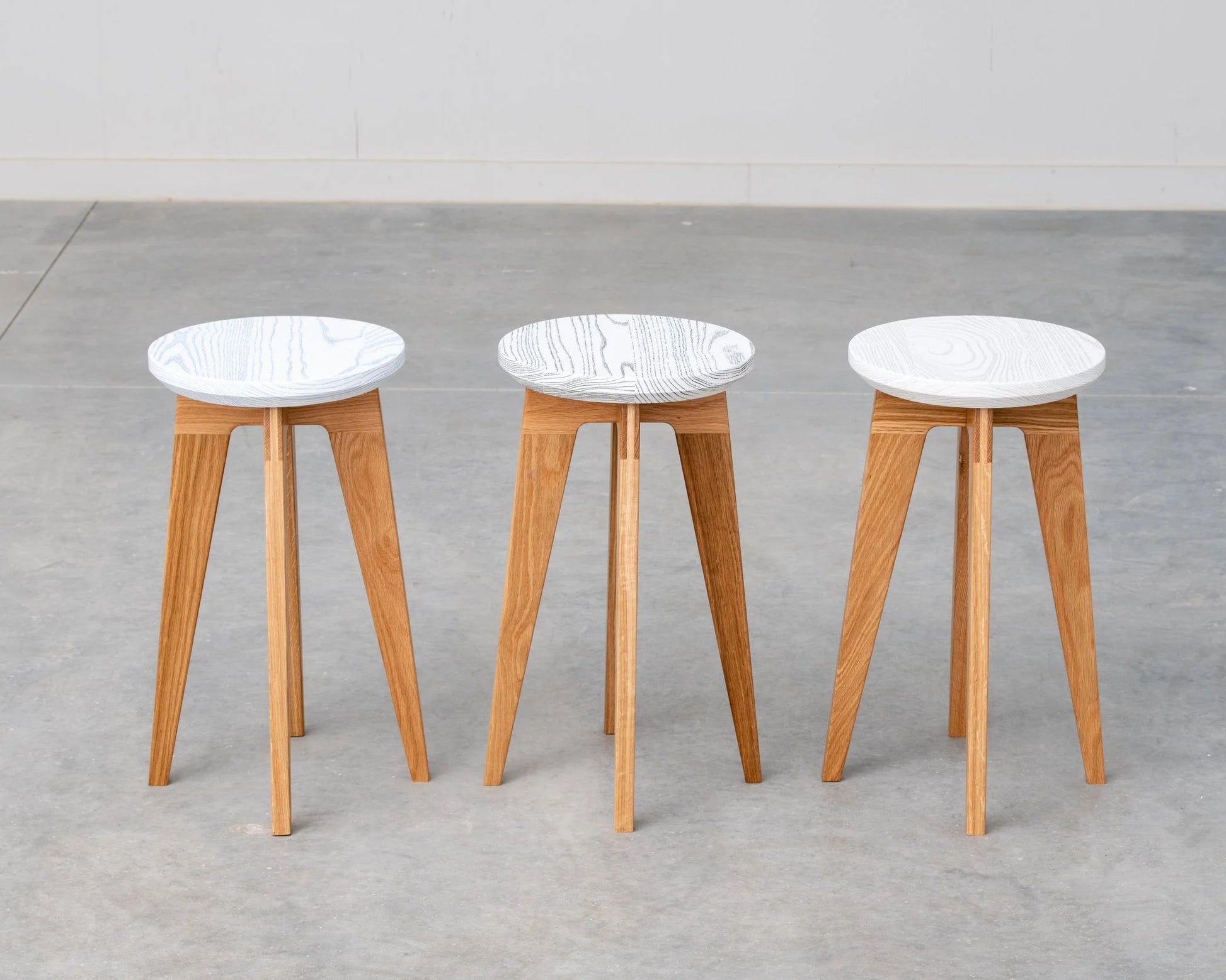Crafted with attention to proportion and joinery, our Pub Stools feature solid ash tops with a subtle beveled edge for comfort and visual lightness. The bases are made from natural white oak and constructed with durable bridle joints, ensuring lasting strength and a timeless profile. With a clean, mixed-wood palette and refined craftsmanship, these stools are equally at home around a kitchen island, pub table, or standing-height workspace.