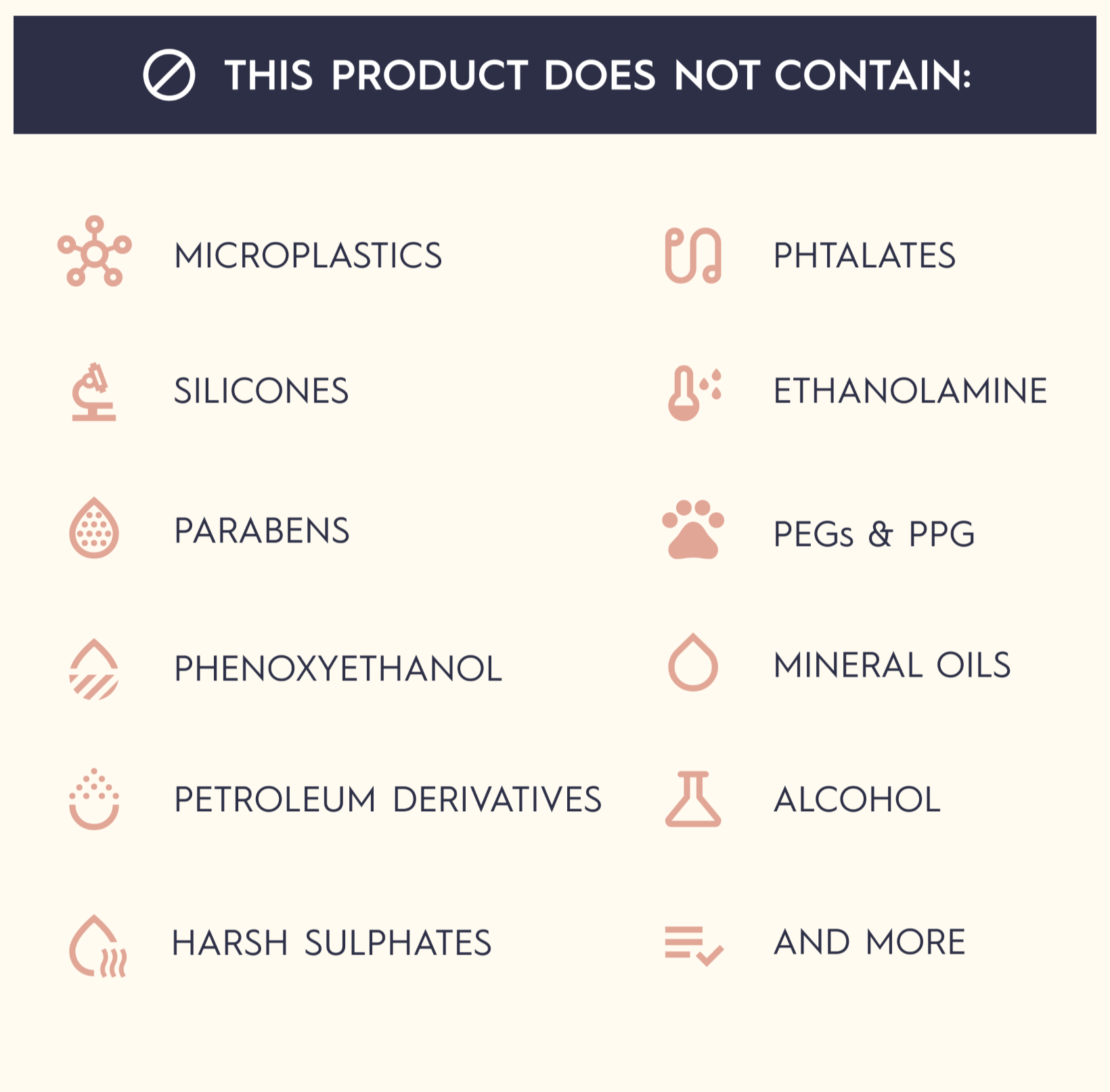 - Highest purity, going beyond Clean Beauty standards - 0% parabens, phenoxyethanol, synthetic polymers, silicones, microplastics, mineral oils, alcohol, and other irritants & synthetics - see full black list
